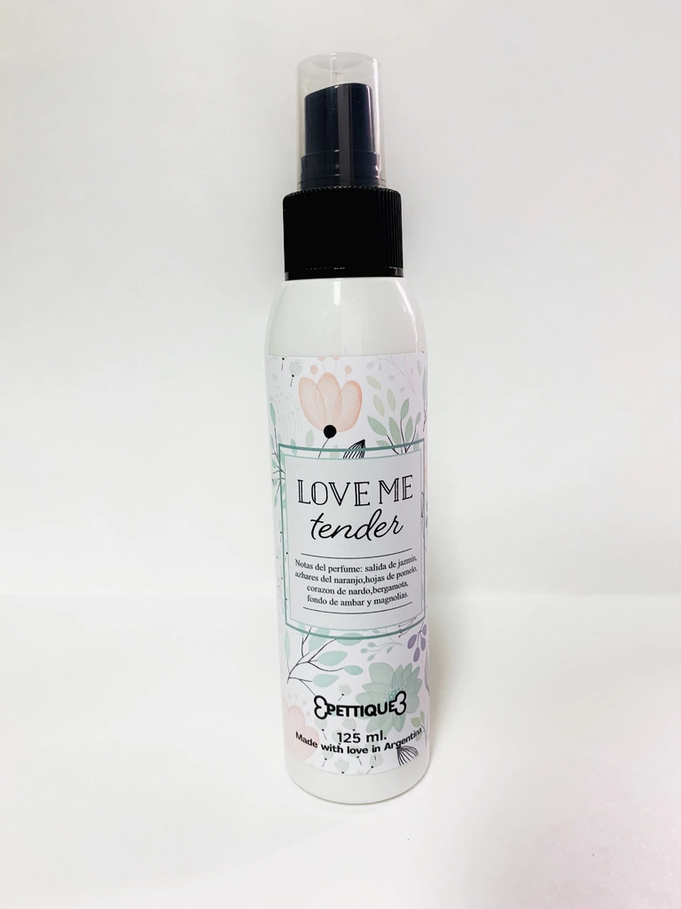 Perfumina para ropa y o ambiente Notas del perfume: salida de jazmín, achares del naranjo,hojas de pomelo, corazón de nardo, bergamota, fondo de ámbar y Magnolias. Haciendo su aroma único e irresistible Ideal para perfumar las prendas de nuestros bebes de cuatro patas y porque no también las nuestras. 125 ml Hecho en Argentina con mucho amor